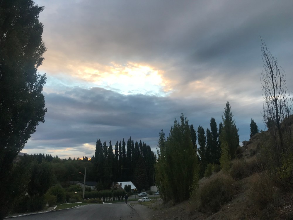 No UBER here so the primary mode of transportation around town is hoofing it. Later found out that taxis are an integral part of getting around Calafate.Β They are safe and reasonably priced!Β Town is sort of an eclectic blend of ramshacklish homes, hostels, tourist stores and hotels. My hotel seems to be constructed and decorated predominantly with recycled / pseudo antique materials. The room is small, but the bed is a dream.