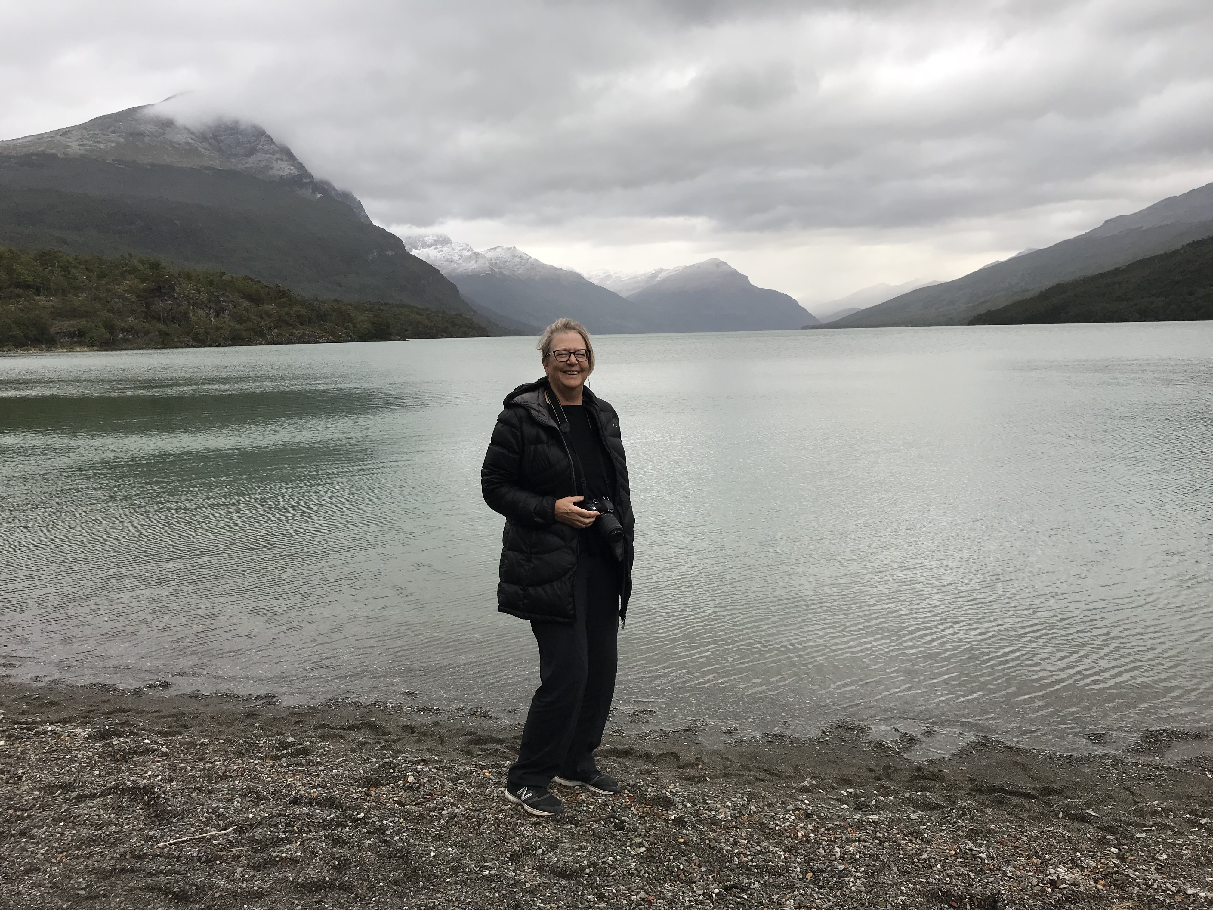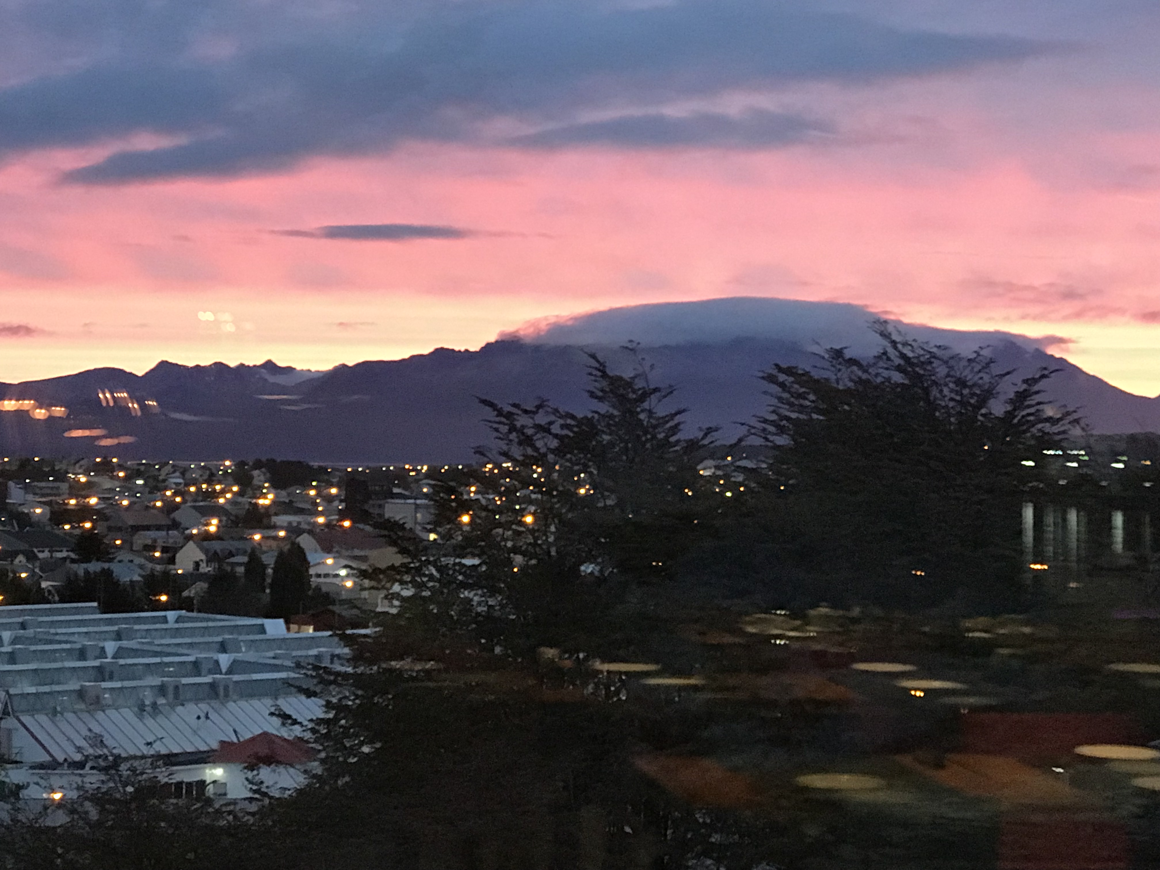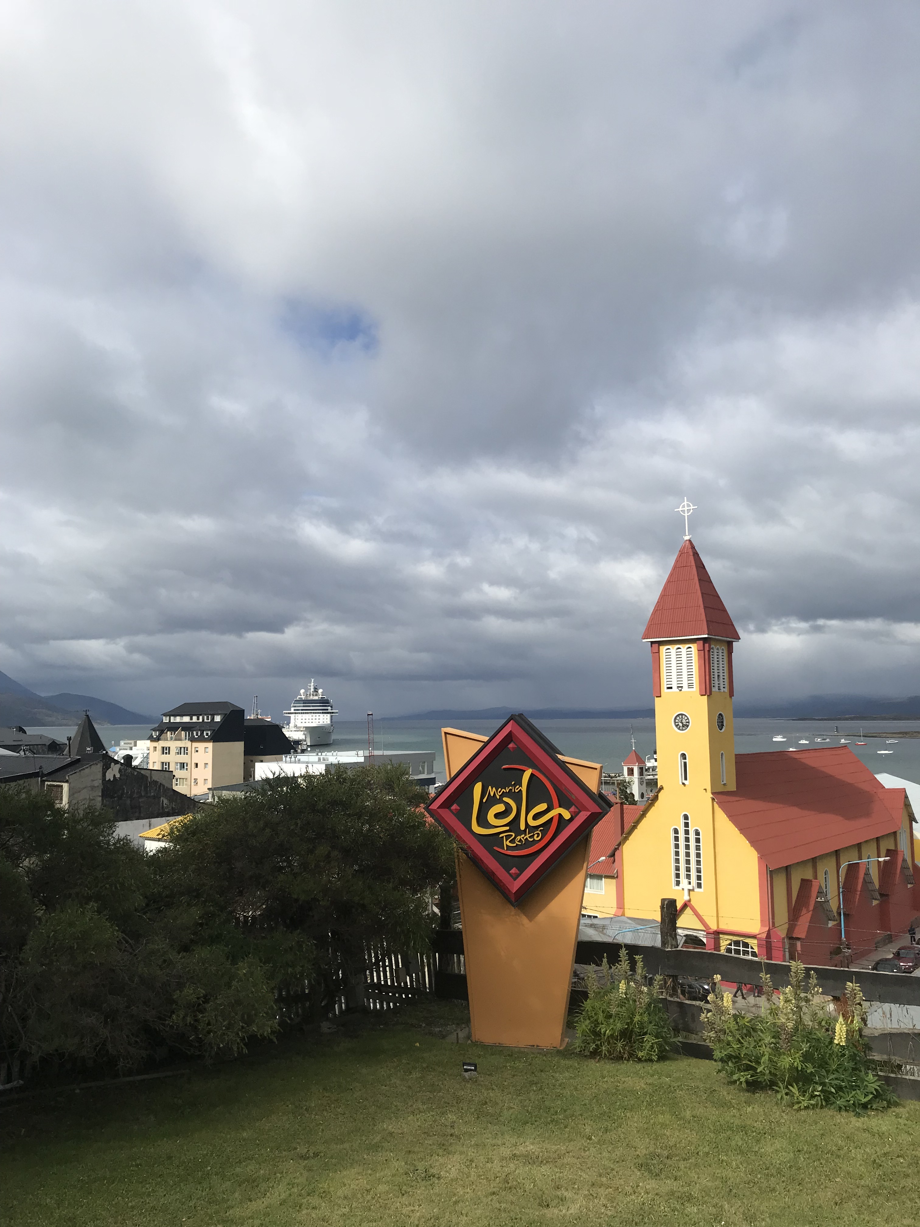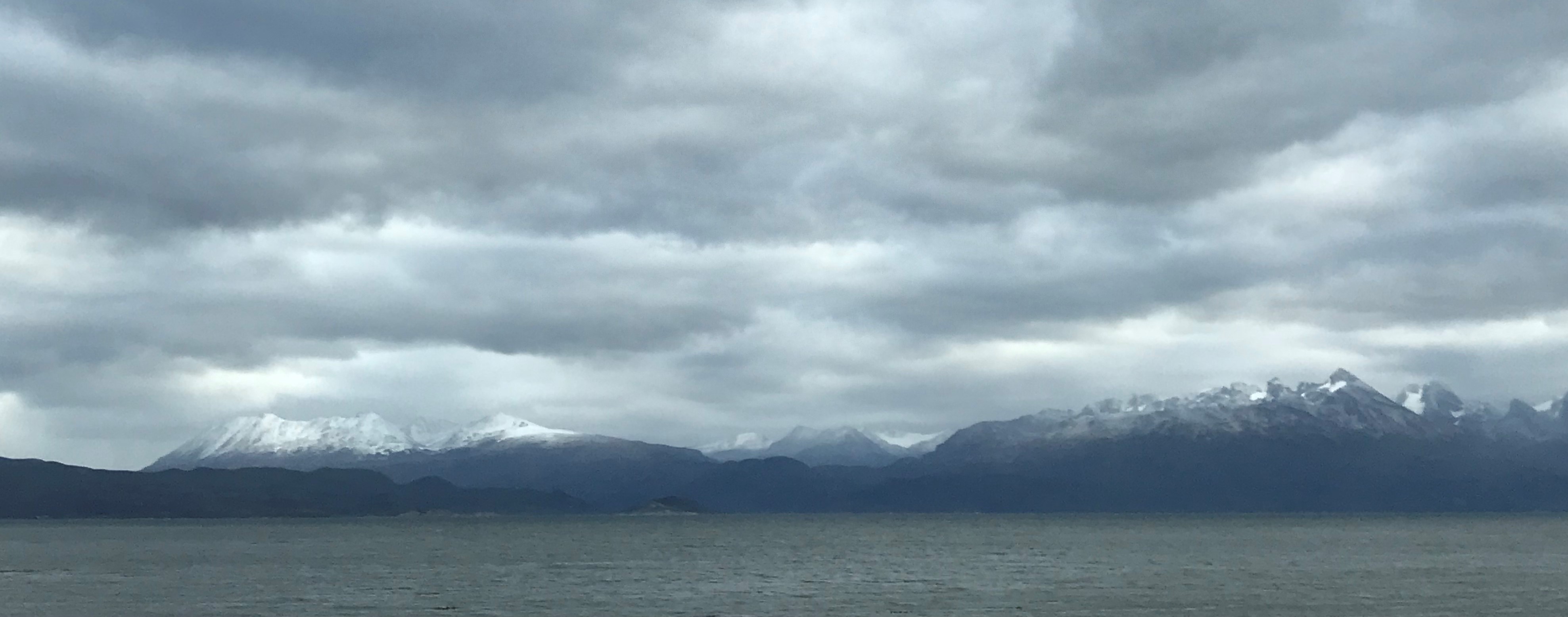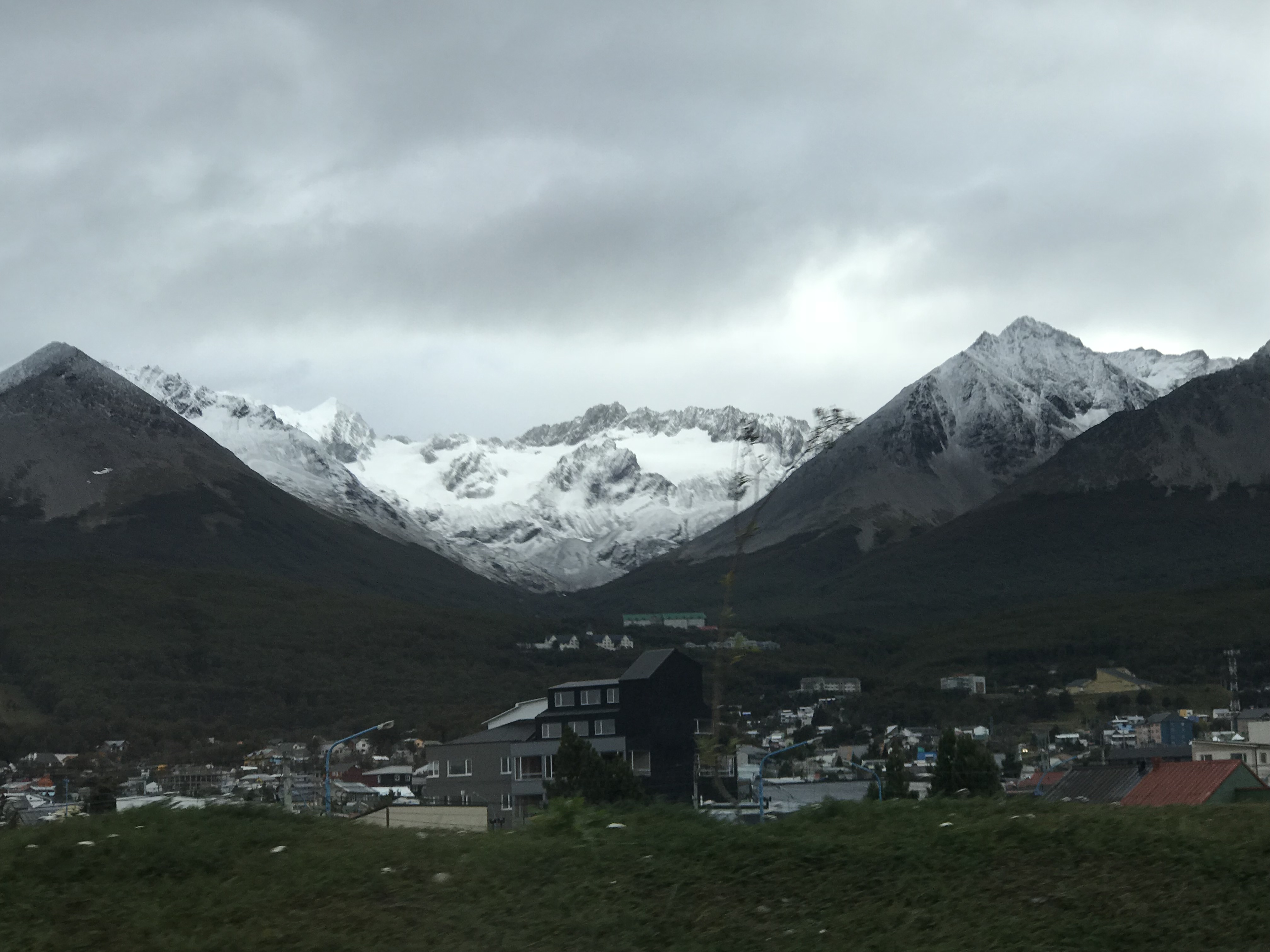 I had to be completely packed to vacate my room in Ushuaia this morning, as I wasn’t able to get a late checkout. So am currently camped out in the lobby with various and sundry other characters who are also waiting for something? The hotel lobby is nice enough for a short campout. There’s a panoramic view of the Ushuaia port and both the Argentinian and Chilean Andes surrounding the Beagle Channel with fresh snow on top.