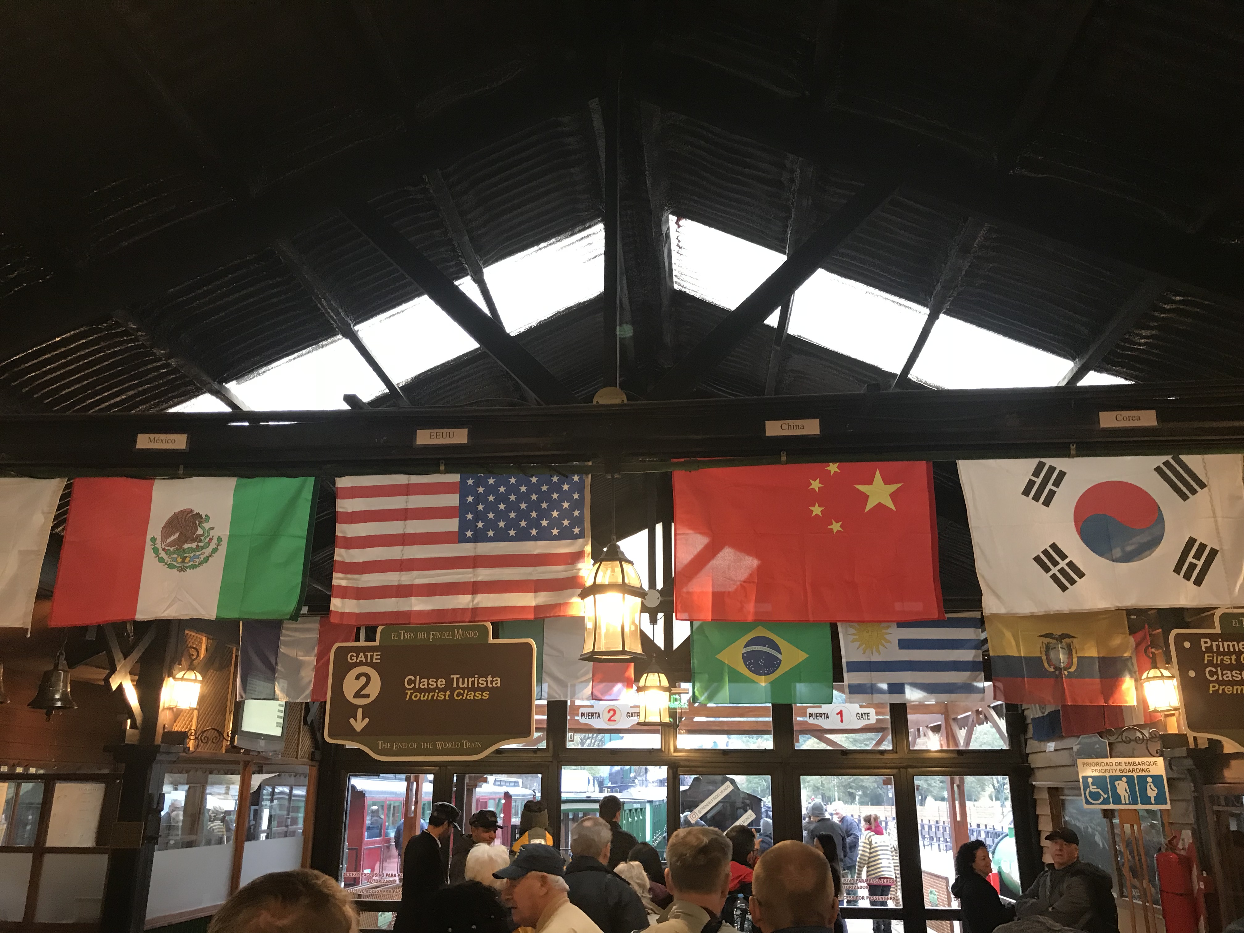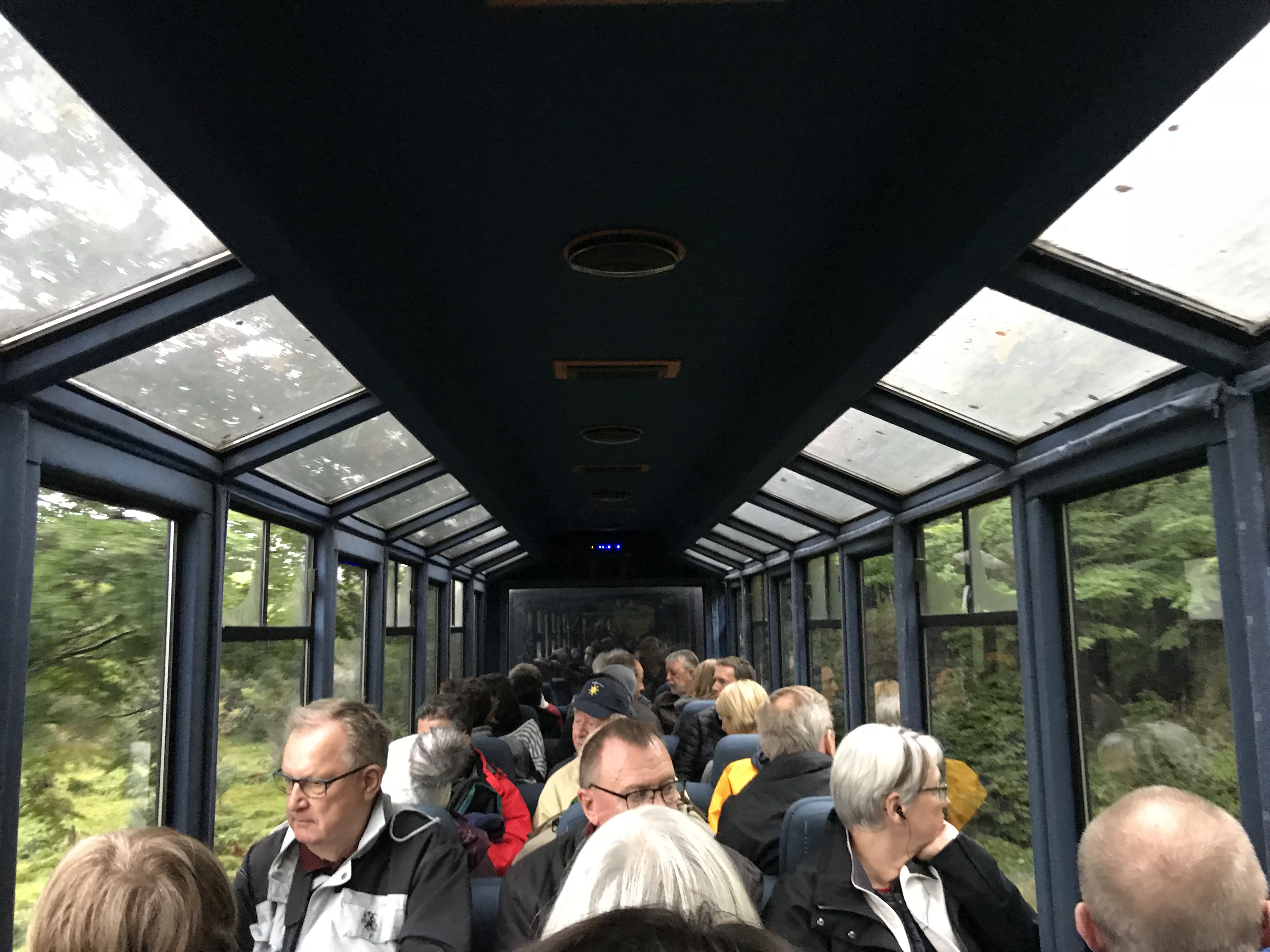 The park is just a few miles out of Ushuaia, so it was just a few minutes ride to the train station. I recall seeing signs that said something like Entrenar el Fin del Mundo. This area was essentially occupied solely by indigenous people as late as the mid-1800s. When Charles Darwin discovered the Beagle Channel, the Brits attempted to seize control of the area, for obvious navigational “control” and other reasons. The Argentine president decided to keep it for his country, so following the example the Brits had set in Australia, he created a penal colony. There began the decline and decimation of the native population. The train was built to take the prisoners into the heavily forested Fin del Mundo area to collect wood for building and heating. It continues to run today as a tourist trap, I mean attraction, and they seriously pack people in 3x tighter than airlines.
