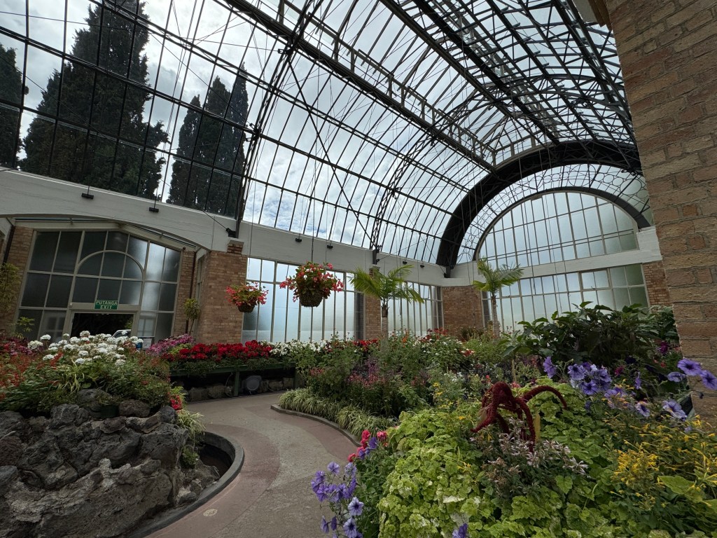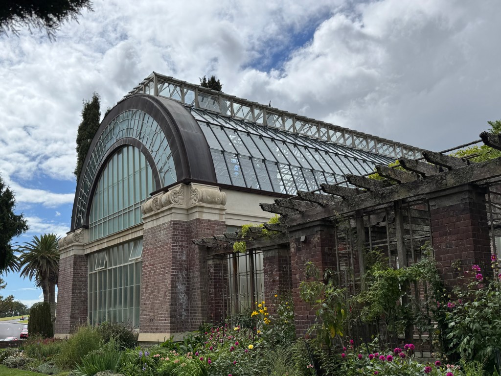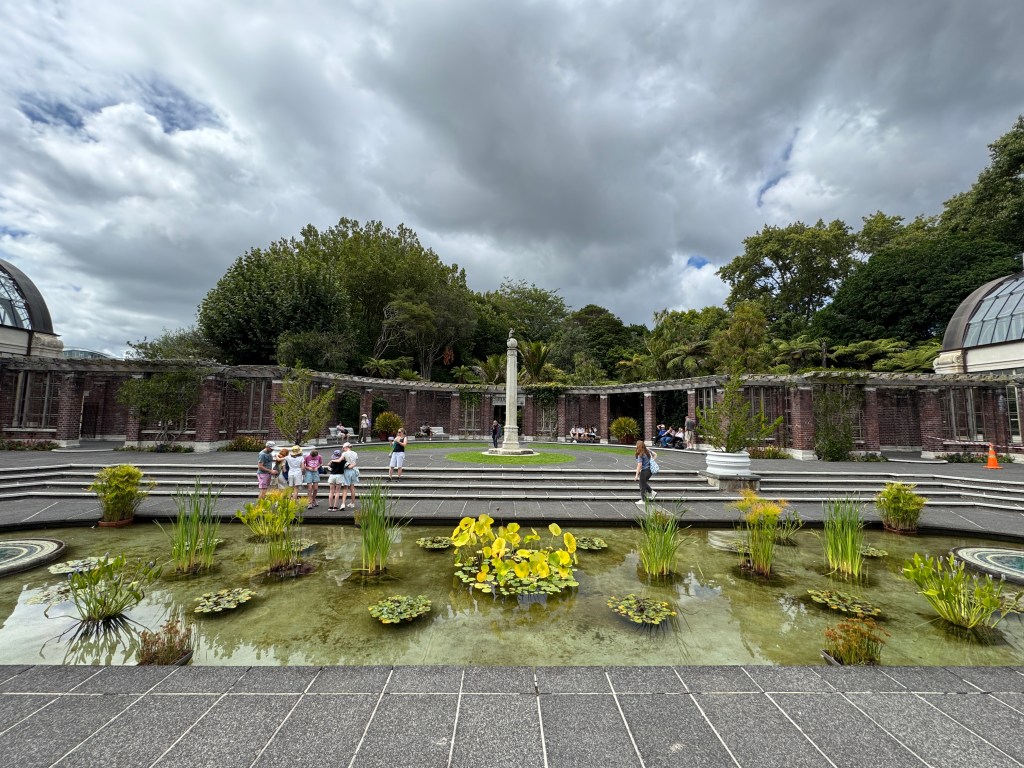 We ‘hopped on’ and stayed on the bus for the first few stops, then got off to see the Domain Wintergardens. These were the gardens I had attempted to reach on my first day in Auckland, so I was really happy to have the opportunity to see their beauty. The Victorian era greenhouses, built in the early 1900s, have variety of plants and flowers. There is a beautiful fern grotto in an old quarry area, a ‘corpse flower’ (not blooming) and a pretty water garden. There’s a heated greenhouse with tropical and heat-loving plants while the other one displays temperate plants which change with the seasons.