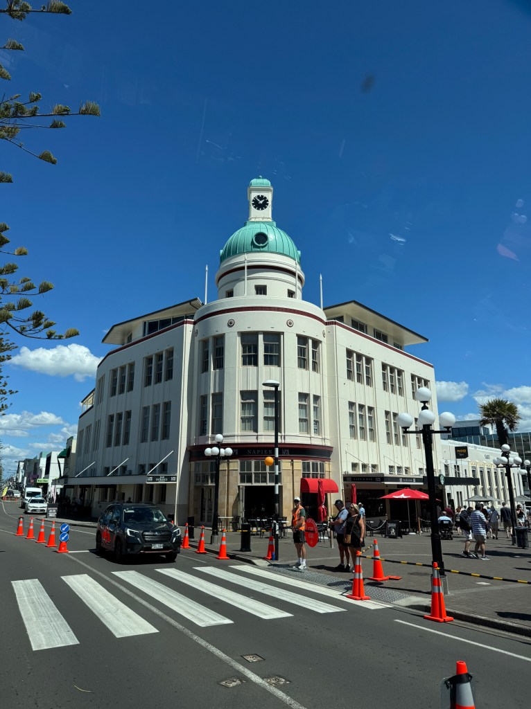 Sunday, February 23, 2025 – Cute city, this one! Located in the popular wine-producing region of Hawke’s Bay, Napier was devastated by a 7.8 earthquake in 1931. The town was rebuilt in art deco style. Today, beautifully maintained buildings and residents who enjoy classic cars and dressing in the fashion of the era spotlight this charming little city.