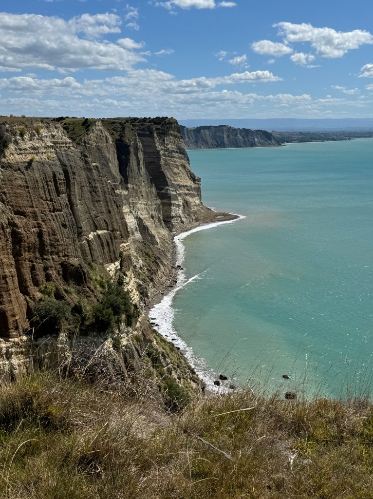 Fern and Larry selected a city tour and I went to Cape Kidnappers, a headlands area 25 miles southeast of Napier. Between Napier and the cape lies a very exclusive resort and golf course aptly named Cape Kidnappers. Two night minimum stays start at US$5000 for two, not including golf which is US$450 per person. Too rich for my purse! I was hoping to at least be able to see some of the golf course on the way by, but it’s situated to take advantage of the amazing ocean and cape views, so only a tiny glimpse of the course is available from the road.