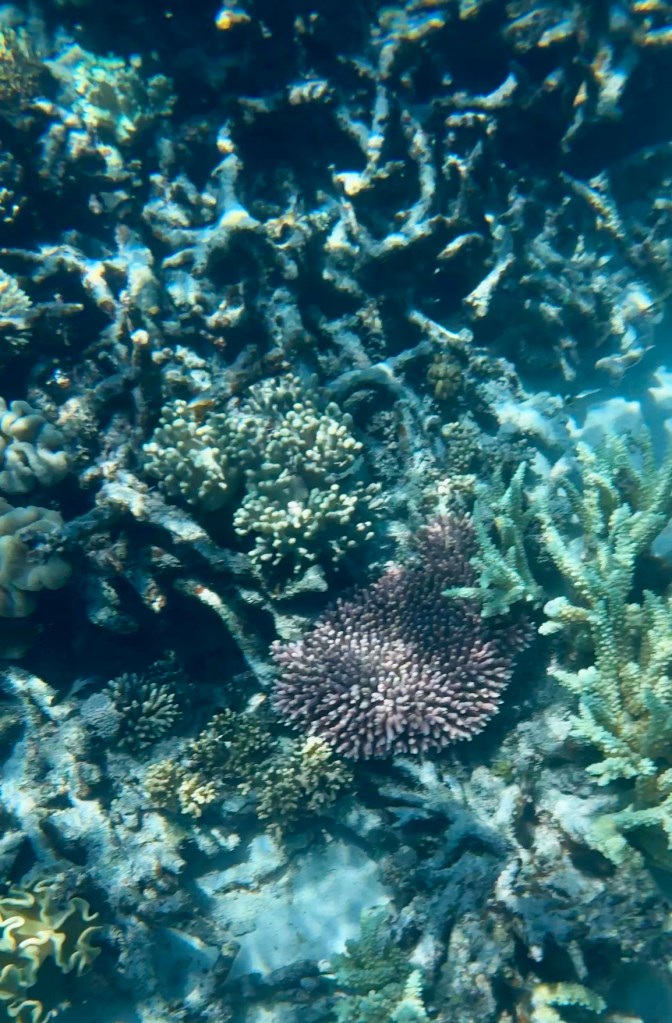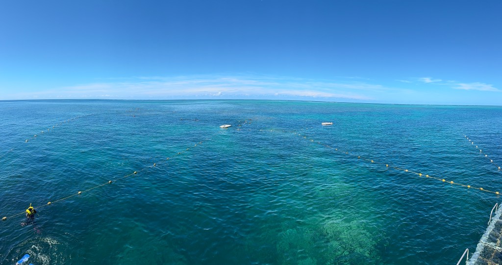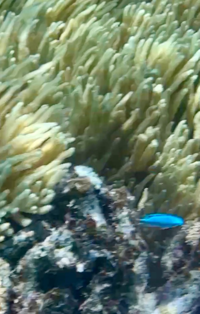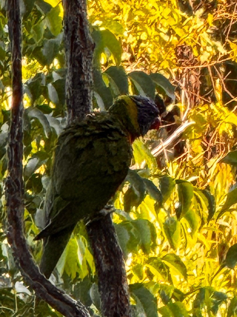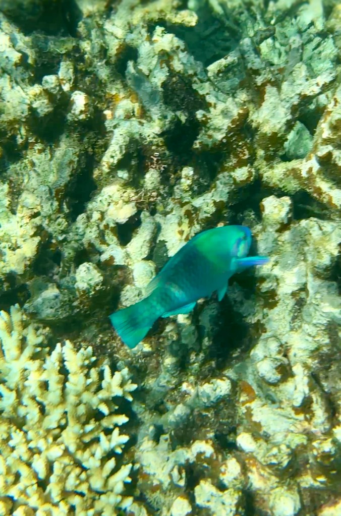 My walk up to breakfast before I left for the reef The bird bath was busy while I was enjoying my breakfast. This Black Butcherbird was having the bath of its life.Rainbow Lorikeet It’s getting real!YIKES!!! The monstress of the reefThe platform is that hulk on the distance… and yes, those blue fins are mine as I slipped under the rope to deeper and clearer water 🤪I had gone beyond the ‘ropes’ where the other people hadn’t been, so the water was extremely clear and deeper with different corals and the fish were abundant. Then this guy had to spoil it all by chasing me back to the platform 🤪