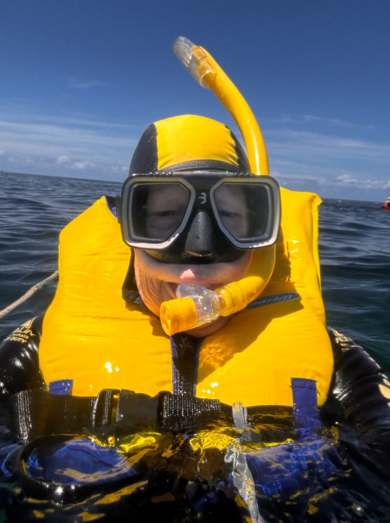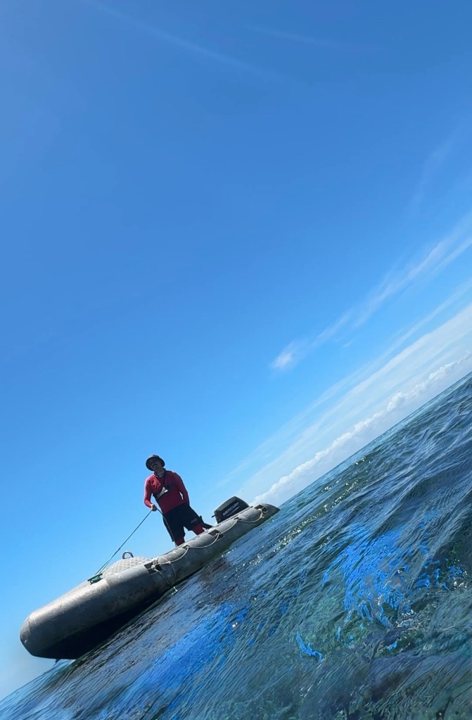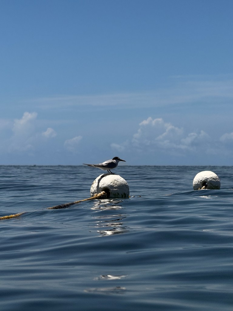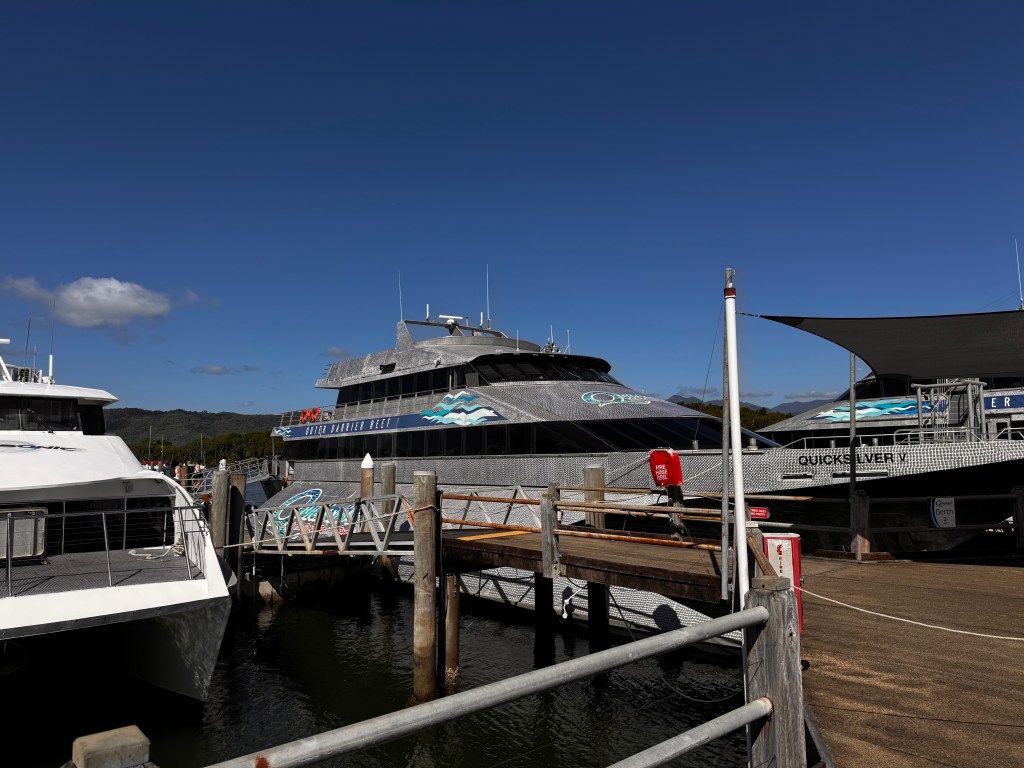 My walk up to breakfast before I left for the reef The bird bath was busy while I was enjoying my breakfast. This Black Butcherbird was having the bath of its life.Rainbow Lorikeet It’s getting real!YIKES!!! The monstress of the reefThe platform is that hulk on the distance… and yes, those blue fins are mine as I slipped under the rope to deeper and clearer water 🤪I had gone beyond the ‘ropes’ where the other people hadn’t been, so the water was extremely clear and deeper with different corals and the fish were abundant. Then this guy had to spoil it all by chasing me back to the platform 🤪
